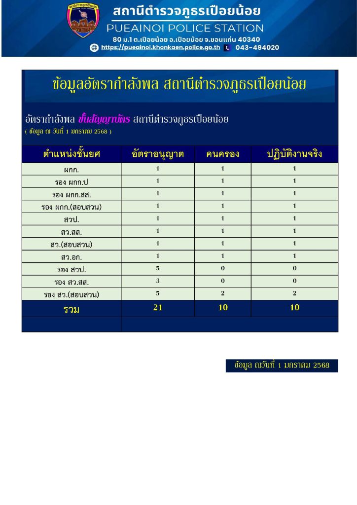 O2 ข้อมูลผู้บริหาร อัตรากำลังและพื้นที่รับผิดชอบ
